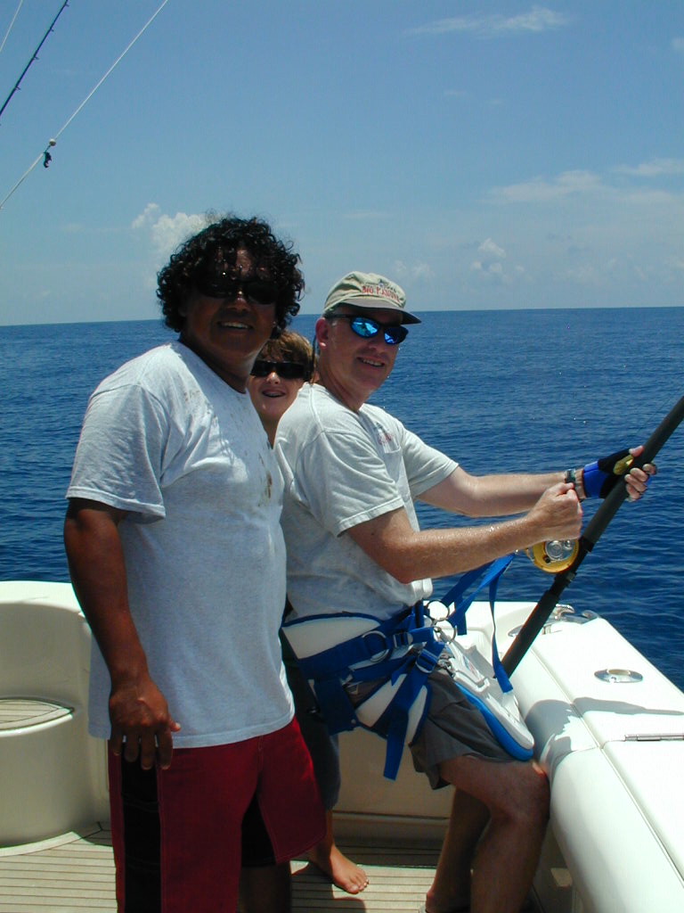 7/29- Fishing Corbetena Rock with Kevin, Tony & KJ. We caught our first "vacona" only one month after arriving in PV. It taped out at 278 pounds.