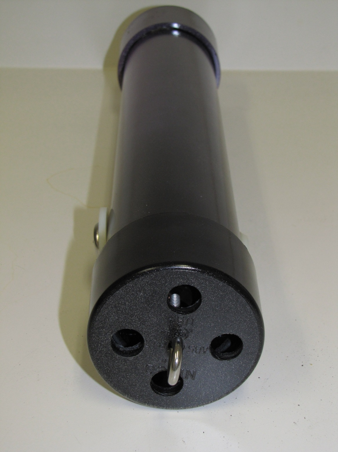 INSTRUCTIONS: Cut pipe to desired length. This one is a 12"pipe and an overall length of about 14" . Drill four 1/2 inch holes in the large drain "tail" to make smoke. Insert the small drain piece in the bottom (no glue) and then attach the large floor drain "tail" with PVC glue. This piece comes with a stainless steel bottom plate that you can leave or remove. You can use a rounded (white) or flat (black) cap for the front end. Drill four 1/2" holes in the cap plus a 1/8" hole dead center for the stainless steel eye bolt. Mount the eye bolt with a flat and lock washer. Use a set screw on the front cap rather than glue so that you can remove the cap and play with the number of marbles inside. I start with five and it really rattles. Drill a small hole for the set screw when the cap is tightly in place. I use a counter-sink on the set screw hole so it is flush. I mounted a little weight in the bottom of the tail to help it run in the correct vertical position (not shown in these photos). Personally, I do not mind it turning because it looks like the fish is panicking or hurt.